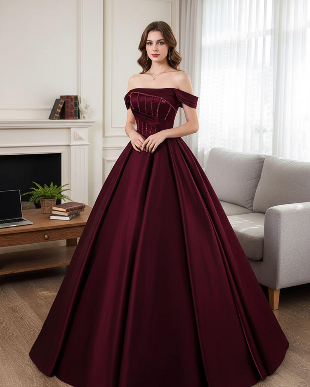 THIS BEAUTIFUL MARRON BALL GOWN GIVING ALL THE PRINCESS VIBES. PERFECT PARTY WEAR DRESS
